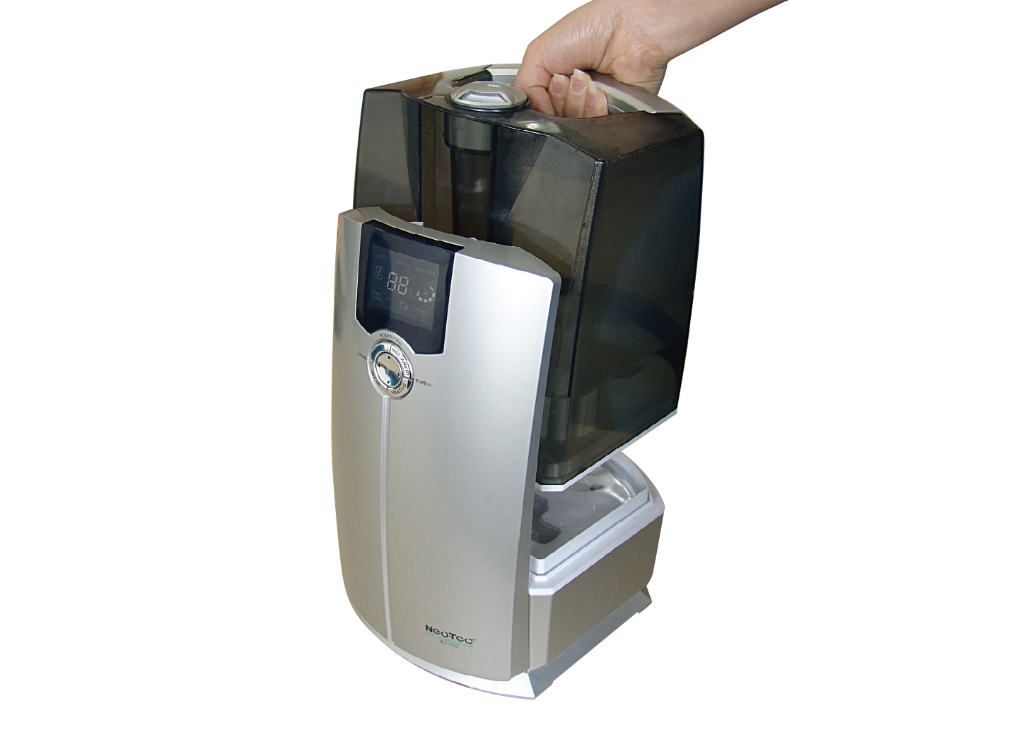 超声波及陶瓷加热组合,高效节能 热雾加湿,杀灭水中滋生细菌,杜绝二次污染 微电脑自动监测空气湿度并自动运行,自由设定 LED数码显示屏实时显示运行状况 长达8小时的定时设定运作 离子交换过滤器改善水质,有效减少白色粉末生成 喷雾口可360°旋转,可随意设定喷雾方向